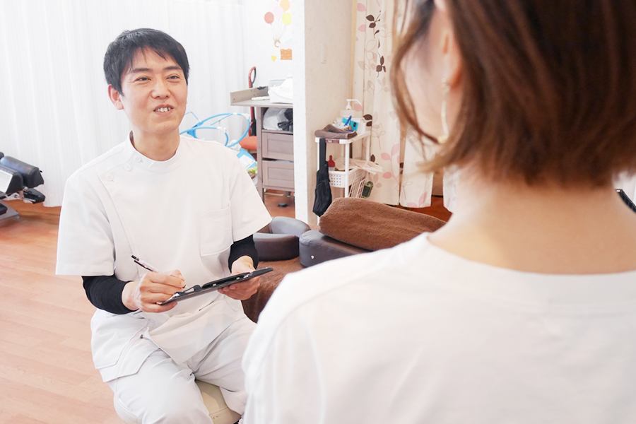 当院には、様々な悩みを抱えた患者さまが来院されており、その悩みを解決するために、しっかりとカウンセリングをせていただき、その上でゆがみの検査等をおこなうことで、原因を特定し改善するために必要なアドバイスと施術方法を提案させていただいております。